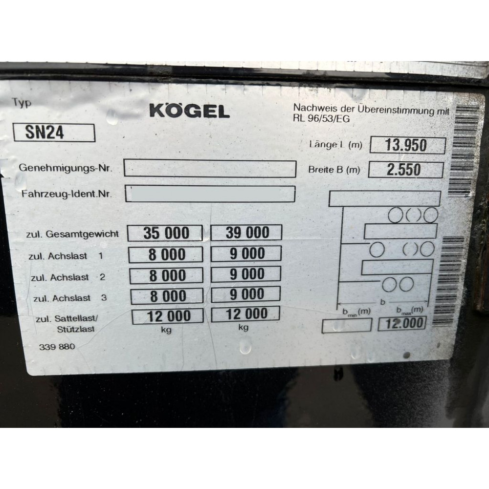 Допустимая полная масса транспортного средства (GVW)39 000 кг